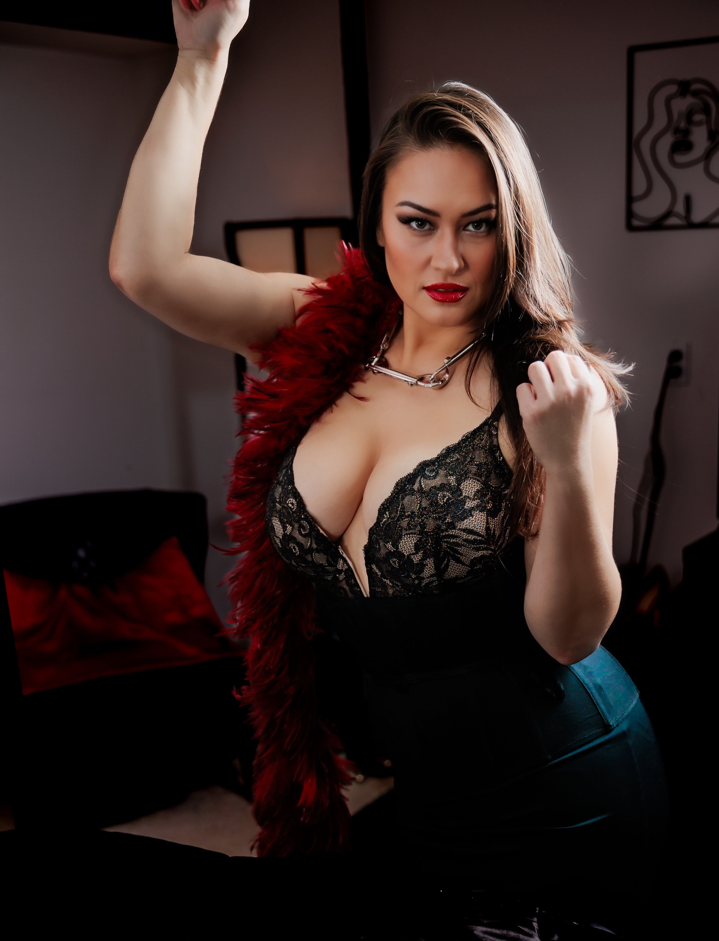I believe a Domme can never stop growing and learning when it comes to the erotic art of Domination and this is exactly where My passions lie; exploring, playing and discovering what kinky buttons to push when I have you in My tight grip. It's a thrill to take control of you, to mold you, and to seduce you into submission.